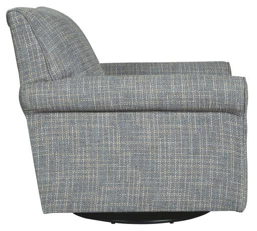 View full detailsSporting a tantalizing tweed weave fabric in such a soothing blue hue, this swivel glider accent chair gives the classic roll arm chair a modern tw...