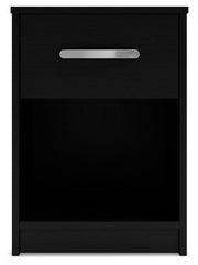 Practical and attractive, this nightstand blends seamlessly with modern decor and makes a smart addition to a bedroom. Its smooth-gliding drawer is ideal for bedside essentials. An open cubby provides a nice place for a storage basket or vase. The nightstand's curved metal pull in a brushed nickel-tone finish adds to its streamlined aesthetic. Combine with other units in the collection to create a room that’s sleek and stylish.