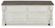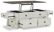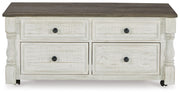 Havalance - Lift Top Cocktail Table with Storage Drawers - White / Gray