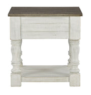 What a fresh interpretation of country classic style. Inspired by American farmhouse craftsmanship, but with an elevated sensibility, this square end table blends distinctive details such as turned post accents and raised drawer fronts for a substantial look that feels right at home. Those who appreciate rustic character should take note of the table’s thick crown moulding, beautified with a vintage two-tone finish. Robust legs lend a hearty, substantial feel ready to withstand the test of time.