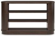 This credenza is perfectly modern in every way. Finished on both sides in a rich wood tone, the bookcase can be floated in a room or used as a divider. Adjustable shelving and open storage deliver a well-organized space for work-from-home professionals. It's a striking study in upscale contemporary form and function.