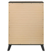 Organize your bedroom with this stylish chest, featuring a combination of mid-century modern design and rustic wood grain effect. The weathered brown and natural pine finish adds warmth and sophistication, while the matte black finished metal pull handles provide a modern touch. Made from engineered 3D paper veneer, this chest offers durability and ample storage space with its multiple drawers. The English dovetail drawer joinery and center metal drawer glides ensure smooth and reliable functionality.