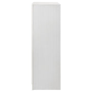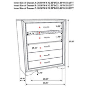 Add posh, upscale ambiance to your bedroom decor. This chic, stylish chest livens up a room with a dazzling touch of sparkle. With a hidden jewelry drawer built in, it keeps valuable items safe and secure. Its drawers are lined with felt for a luxurious hint of softness. Its five convenient drawers are built with full extension glides for versatile ease of use.