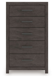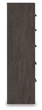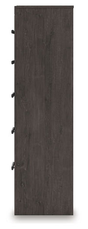 Designed with everyday style in mind, this chest of drawers is a simply chic approach to modern living. A dark charcoal finish blends black and brown undertones, creating a versatile look that effortlessly pairs with your existing pieces. And for must-have function, five smooth-gliding drawers store clothes and linens in charming fashion.
