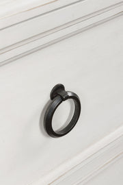 Taking a laid-back approach to casual traditional design, this artfully crafted chest of drawers combines classic elements with a clean modern approach. Its rubbed antiqued finish exudes a comfy, timeless appeal that's sure to carry you away to a dreamy time and place. Simple round metal knobs and ring pulls on the chest's spacious drawers make just the right statement.
