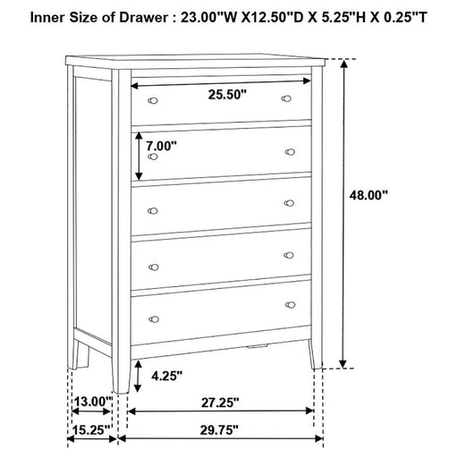 View full detailsOrganize your space with this five-drawer chest, offering clean lines and timeless appeal. The rich cappuccino finish enhances the warmth of its wo...