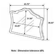 This stately mirror will bring a sense of French Provincial design into your sleeping space. Ideal for pairing with a matching dresser, this is an upholstered mirror with exceptional aesthetic details. A row of nailhead trim adds a textured element to the frame. The exceptional curved design of the frame offers a modern twist on a traditional mirror. Use this mirror to bring glamour and elegance to your bedroom.