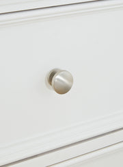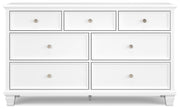 This dresser exudes timeless casual design that's ready to define your personal space. Its clean, contemporary white finish, framed drawer fronts and round metal knobs easily adapt to a variety of interiors. Featuring seven storage drawers with dovetail construction and traditional tapered feet, this piece is sure to bring elegant simplicity to your bedroom.