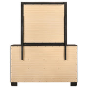 Infuse your bedroom with the transitional style of this dresser, where straight, squared lines create a robust silhouette. The rich finish, accented with recessed grooves, provides a striking contrast, while sleek bar-style drawer pulls add a touch of glamour. With six spacious drawers, this dresser organizes your space with sophistication. The matching square mirror, with its clean lines and slightly exposed wood grain in a dark cocoa finish, warms your space and creates a sleek focal point, whether placed above a dresser or on its own.