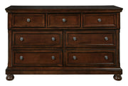 The quality craftsmanship is clear to see. The classic design elements—including inlaid panels, antiqued hardware and bun feet—are easy to love. Satisfying your taste for traditional furnishings, this dresser is elegant without looking fussy. Seven roomy drawers keep your wardrobe organized in style. A hidden pull-out tray behind the top middle drawer puts your small valuables out of sight.