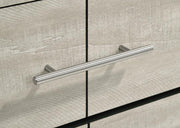 This six-drawer dresser combines modern style with a rustic edge, creating the perfect balance of elegance and functionality for your bedroom. With a rustic finish over rough-sawn, white-washed engineered paper veneer, it exudes a warm yet contemporary feel. The extra-wide polished nickel handles add a sleek contrast, enhancing its sophisticated look. Constructed from durable engineered wood, the dresser features English dovetail joinery and Center metal glides, ensuring smooth operation and lasting quality. Its spacious drawers offer ample storage to keep your space organized and stylish.