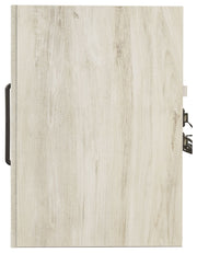 What a delightful take on rustic industrial style. Whether modern loft or modern farmhouse, this nightstand makes itself at home. The wispy whitewash palette enhances without covering the grain for that weathered look you crave. Elongated drawer pulls elevate the aesthetic. Inclusion of USB plug-ins is such a bright idea.