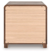 Grace your restful retreat with an added dose of refinement. This nightstand showcases a stunning rich brown wood tone, with sleek drawer pulls for an added layer of luxury. A rounded top softens the silhouette, elevating the look. It’s curated, contemporary and utterly chic.