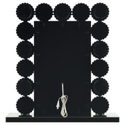 Rest this contemporary table mirror along a dresser or vanity surface for a playful, elegant aesthetic. Surrounded by seven LED bulbs that provide a soft, bright glow for perfecting your glow up, this table mirror offers a dramatic statement piece for bedrooms, bathrooms and more. The Hollywood inspired frame is bordered by individual round mirror tiles, each further framed in sparkling mirror trim. Bold lines and sophisticated mirror plates merge to offer a modern touch. A thick base also provides extra stability and support.