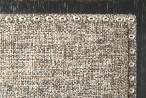 View full detailsThis upholstered dining bench elevates the art of casual rustic style. With a distressed nutmeg finish, antiqued nailhead trim and textured polyest...