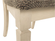 The beauty of this upholstered dining chair is something to savor. Designed to serve up comfort and flair, this rake-back dining chair entices with a cushioned seat covered in a heavy woven fabric that complements the chair’s antiqued white finish.