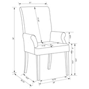 This armchair adds a refined yet relaxed charm to your dining space, blending comfort with casual elegance. Upholstered in linen-like beige fabric with blue stripes, it offers a timeless aesthetic. The padded seat, backrest, and gracefully curved arms ensure both comfort and style. Built with a sturdy rubberwood frame and a sleek black finish, this armchair provides lasting durability. Its versatile design works beautifully in transitional, modern, or farmhouse-inspired interiors.