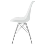 Update your dining space with a chic, contemporary design. This exquisite dining chair will instantly update your decor with a cool, modern edge. Its seat is made from high-quality plastic with a padded cushion for added comfort and support. Its sleek, slim legs are finished in chrome for a dazzling touch of shine. Available in multiple finishes, this chair offers a variety of beautiful options to enhance any color scheme.