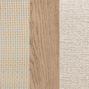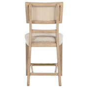Elevate your dining experience with this stylish counter-height chair, combining natural beauty and modern comfort. Crafted from solid wood, this chair features a hand-woven radio weave cane backrest that adds a light and airy feel to your space. The foam seat cushion, upholstered in soft beige fabric, ensures comfort while dining or entertaining. Designed with clean lines and sturdy construction, this counter-height chair also includes a footrest with a brass-finished metal kick plate for added durability. Perfect for pairing with your counter-height dining table or kitchen island, this chair blends timeless elegance with practical functionality.