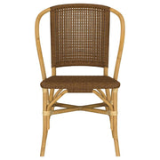 Natural texture and timeless craftsmanship come together in this artisan-inspired side chair. A gently curved rattan frame offers organic beauty and lightweight strength, while woven rattan webbing across the seat and back adds dimension and breathability. Finished in a warm brown tone that highlights each handcrafted detail, this chair brings a relaxed, sun-washed elegance to dining spaces, patios, or casual indoor settings.