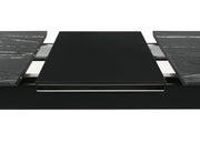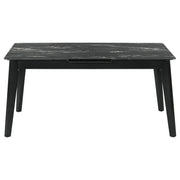 Envision your gatherings transformed with this exquisite dining set, where the sleek lines of modern design meet the timeless allure of faux marble. The table's luxurious marble-esque top is a symphony of style, supported by fin-style legs that ground it with a touch of sophistication. As your ensemble grows with the seamless self-storing extension, the dining tableau adapts, offering a spacious stage for both feasts and intimate conversations. Accompanying the table, the Danish Y-shaped wishbone chairs, dressed in black and beige, whisper of coastal breezes and relaxed elegance, their form both a nod to tradition and a statement of contemporary grace. This dining set doesn't just host meals; it curates experiences.