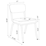 Travel back in time to an easy era where soda shoppes served as social centers. This five-piece dining set features a classic round dining table with a metal ellipse edge profile and shiny top. A decadent flared metal base is open and airy, matching the design of coordinating chairs. Fabric upholstery covers thick seat cushions and slender backs, with piping details creating a bit of dimensionality. Make this dining set part of an overall design scheme that fits your unique style.