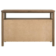 Add easy style and ample storage to your dining room with a modern wooden sideboard with three doors. An open shelf adds easy display space beneath the tabletop, perfect for seasonal accessories that enhance a personalized look and feel. The sideboard features a walnut finish that highlights the wood grain details of its surfaces. Round post legs add a hint of movement to the piece, while three doors open to reveal adjustable shelves for easy storage and organization. Its wide top is ideal for serving delicious meals or showcasing decor.