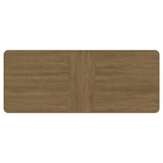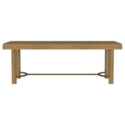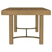 This dining table blends modern refinement with functional design, featuring a trestle base with a metal stretcher bar that adds a contemporary industrial touch. The rounded corners soften the clean lines of the rectangular tabletop, creating a welcoming aesthetic. A removable 18-inch leaf extends the seating capacity, while smooth equalizing metal cable glides ensure effortless, single-person operation. Crafted from solid rubberwood, white ash veneer, and metal, this table offers durability and style for any dining space.