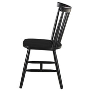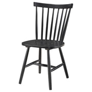Enhance casual seating with the straightforward, timeless cottage character of a traditional dining chair. Perfect for the kitchen or dining room, it boasts stylish wooden construction from rubberwoods, complete with a crisp black finish that complements in a variety of kitchens and dining rooms. The chair features a classic spindle back, offering support with airy presence to lighten the overall look and feel of the chair. Its contoured seat is comfortable and stylish, perfect alone or with the addition of a cushion that adds style (not include). Flared legs complete the look, offering stylish, casual ambiance perfect for a cottage, farmhouse, or coastal kitchen table.