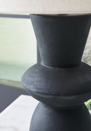 Turn on the brilliance and modern flair of this table lamp set. The angular silhouette and intriguing base in distressed black are the definition of bold style. These lamps pair wonderfully with contemporary furniture.