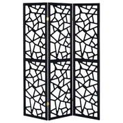 Nailan - 3-Panel Room Divider Folding Screen Open Mosaic - Black