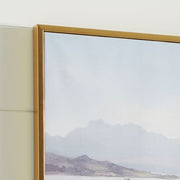 This wall art puts a peaceful spin on hanging decor. Its quiet landscape invites you to a lakeside field, with rolling mountains in the background that bring depth to the design. Hand-painted and gold leaf embellishments make each piece unique.