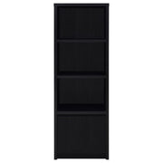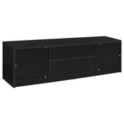 This modern entertainment center combines a sleek TV stand with two matching media towers, offering style and functionality. Finished in a bold black with a scratch-resistant eco-friendly laminate veneer, this unit provides ample storage and display options. The TV stand features cabinets, an open shelf with cable management, and a wide drawer, while each media tower includes open shelves and a bottom cabinet for organized storage. Perfect for creating a cohesive entertainment space in any living room.