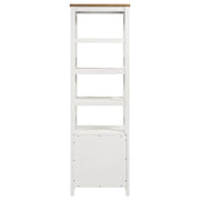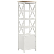 Spacious or compact, a casual living space has storage needs, and this wood media tower is a solid choice. Organize books and implements neatly while adding a fresh, inspiring look to a living room or family room. This modern tower is a mix of cottage-style, coastal, and rustic farmhouse, offering a superbly versatile fit. White finish wood construction features a four-shelf open bookcase above a two-drawer storage unit with full-drawer extension glides, as an eye-catching geometric look places X-shape elements on each side of its open bookcase. A brown finished ash veneer top changes up the style to add even more design flexibility.