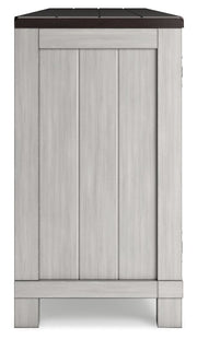 • Glazed light gray painted finish with brown cherry-stained shelves and top