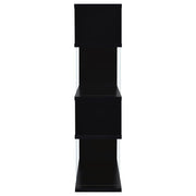 With a striking, zig-zag design, this bookcase exudes contemporary charm. Though they appear to be open, its sides are enhanced by tempered glass panels to help keep books and belongings in one place. With four convenient tiers, it provides ample space for storage. Made with MDF and engineered veneer, this bookcase offers quality and durability.