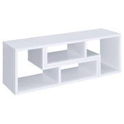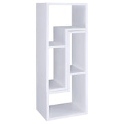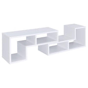 Perfect for a variety of uses, this two-piece bookcase and TV console is fabulously versatile. It allows you to switch between various bookcase and TV stand configurations for your convenience. Bold, L-shaped shelves are arranged in striking geometric designs for a modern look. A while finish enhances its contemporary appeal. Crafted from top quality materials, this bookcase is sturdy, stylish, and smart.