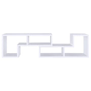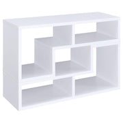 - An asymmetrical arrangement of shelves creates an intriguing silhouette while o?ering ample storage space