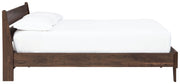 A rich finish over replicated walnut wood grain with authentic touch. Cases are accented with burnished gold color handles. Spacious drawers with ball bearing glides offer a smooth opening and closing of the drawer. Night stands feature open shelving. Vinyl wrapped drawer sides and back for extra durability.