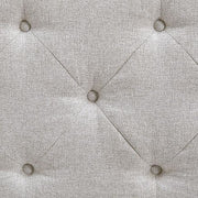 Contemporary style gets practical with this bench. The tufted beige seat cushion is hinged to allow easy access to whatever you need to hide in plain sight. Raised edges give the impression of arms, while the light brown finished wood legs help it blend with many different modern styles.