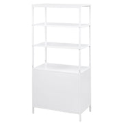 Elevate your storage solutions with this stylish two-door tall accent cabinet, expertly crafted from durable metal for long-lasting support. The sleek powder-coated finish adds a modern touch while providing excellent resistance to scratches and wear. The polyethylene (PE) rattan door fronts bring a hint of coastal charm, adding natural texture to your decor. With three tiers of open shelving, this cabinet offers ample space for displaying decor, books, or essentials, while the enclosed cabinet with a fixed shelf provides additional storage for items you want neatly tucked away. This versatile piece seamlessly combines function with style.