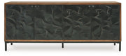 Revamp your home with this stylish accent cabinet. Featuring four doors with a captivating textured pattern, it instantly becomes the centerpiece of your room. The cabinet's interior shelves make it versatile for use as a buffet, console or media cabinet. It's a smart choice that elevates your home on multiple levels.