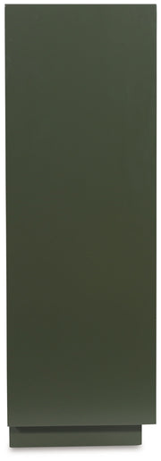 This accent cabinet makes a big impact with just one piece. Its intricately patterned doors impress with their dimension, while the dark green finish and sleek goldtone handles add a touch of modern elegance. Adjustable shelves add everyday functionality to this sophisticated yet approachable piece.
