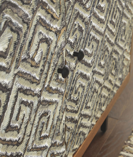 View full detailsAn ornate medallion brings boho charm and artisan character to a farmhouse accent cabinet. Easily doubling as a side table, the cabinet features th...