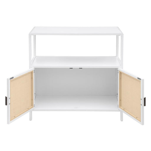 View full detailsBring a touch of coastal charm and modern design to your space with this two-door accent cabinet. Crafted with a sturdy metal frame, this cabinet o...