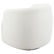 Curl up in comfort and style with this plush swivel accent chair, wrapped in soft faux sheepskin upholstery. Its rounded barrel-inspired silhouette and low backrest embrace you in cozy support, while the hidden swivel base allows a smooth 360-degree rotation for effortless movement. The tailored tight seat and sleek, minimalist profile add modern refinement, making it a versatile piece that complements any living room, bedroom, or reading nook with inviting warmth and timeless appeal.