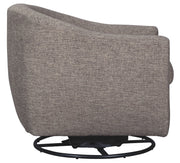 Take a turn for the better with this upscale swivel glider accent chair. Upholstered in a richly woven taupe fabric, this contemporary beauty with tufted barrel back provides a smooth 360-degree swivel that’s such a nice twist.