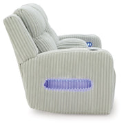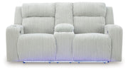 Trend-right style, meet irresistible modern function. Your living room gets a cozy-cool upgrade with the TwinBrooke power reclining loveseat. Curl up in its ultra-chic corded upholstery and recline with one-touch controls. Is it movie night or game time? With ambient LED lighting, this loveseat transforms from a serene relaxation spot to an entertainment hub.