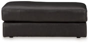Keen on crisp, contemporary design? Adore the pleasure of leather? Look no further. This ottoman satisfies on every level. Richly textured and decadently supple, the cushion is wrapped with expertly matched leather and faux leather upholstery in an on-trend onyx tone. The ottoman's clean-lined profile completes its simply chic appeal.