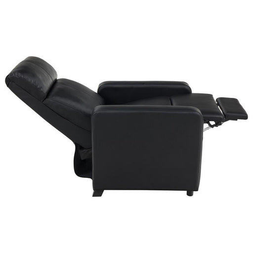 View full detailsSettle into luxurious comfort with this push back recliner, designed to bring modern elegance to a living room or home theater. Upholstered in smoo...